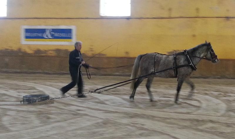 Après nous avoir donné la très belle Dramione, Valinor a été débourrée aux longues rênes en vue d'une carrière à l'attelage. Elle semble déjà tout connaître.