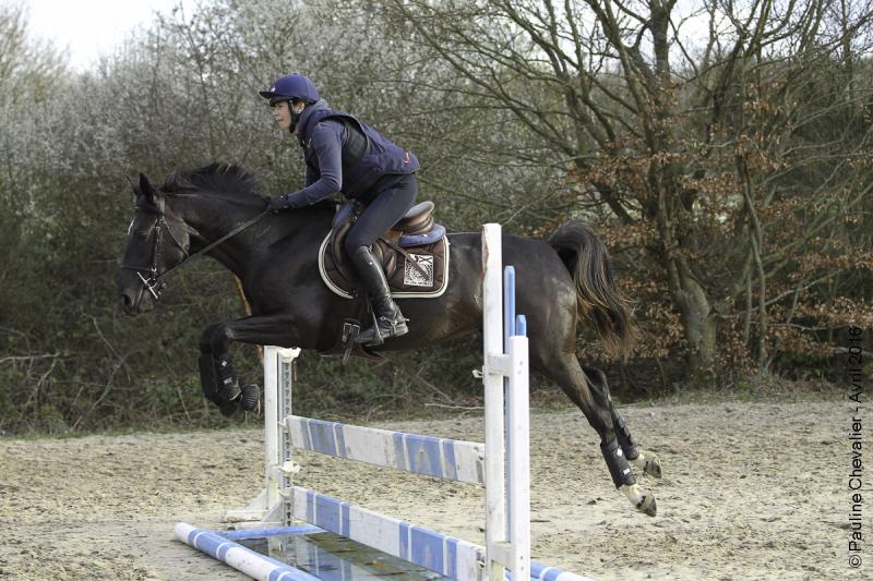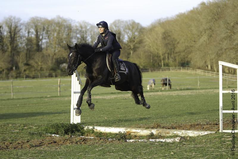 Avec sa cavalière Eleonore Musa, Cydonia, ma petite perle noire a découvert le cross hier sur le beau terrain de Bonneville.