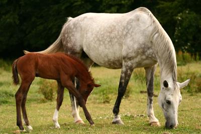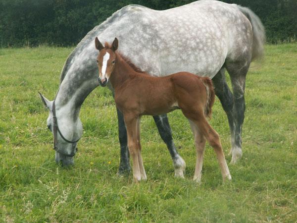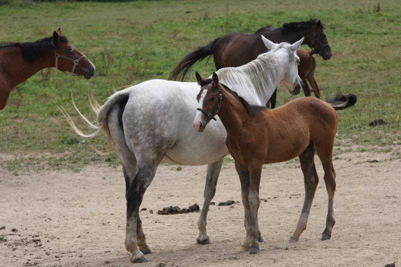 une excellente mère qui éduque et nourrit ses poulains très bien.