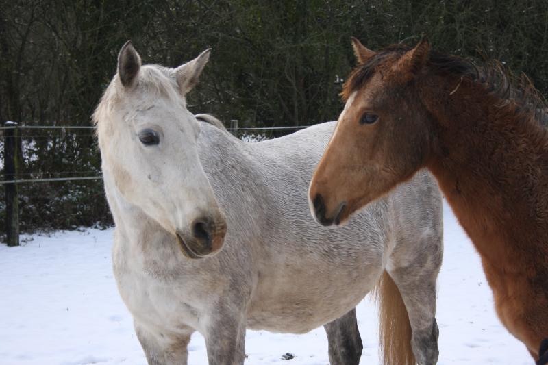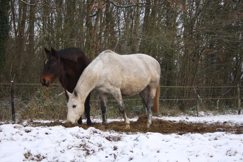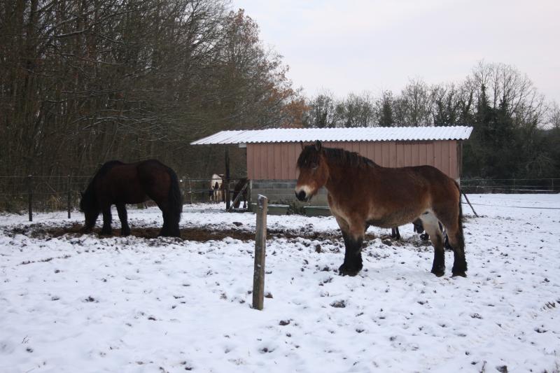 Bien sûr, qu'il a neigé...mais depuis le temps et les chevaux ont presque l'habitude! Mais cela fait toujours une occasion de faire des photos...