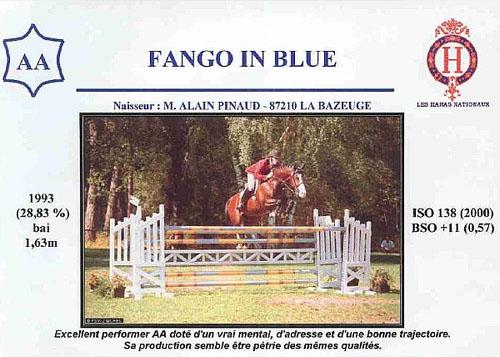 Fango est un fils de Véganum (Laudanum et Vega A, propre soeur de Iago C) auquel il a pris les grandes balzanes et sa grande liste. Véganum AC a produit de bons chevaux de cso et de complet, en SF et en AA, à l'image de Elvas des Aucels IE SO, Fédora de Pétra ICC 125, Flaganum du Boulou ICC 133, Yadlavie ISO 130, Espoir de Roche ISO 138, Gambade du Mée ICC 133, Gold in Blue ISO 125, Usidère ICC 129, Kay Ouest ISO 138 et Fango In Blue ISO 138.