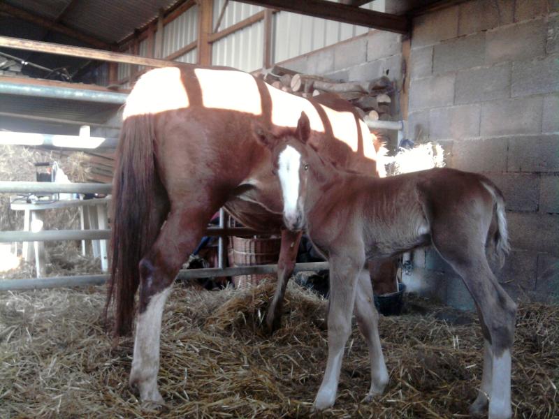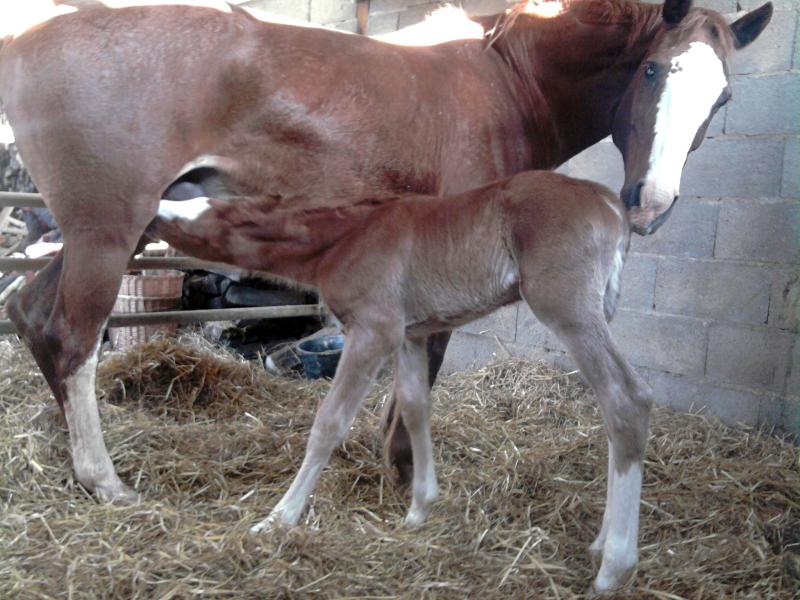 Masca a mis au monde, mardi 18 mai à 23h00, une très belle pouliche d'Apache d'Adriers. Cette fille attendue se prénomme Azerty. Elle est alezane avec une grand liste et quatre grandes chaussettes.