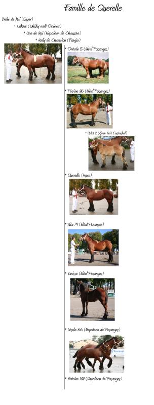 Querelle a eu une belle fratrie et hormis Oréole, alezane et caractérielle, elle n'a que des soeurs baies. Si bien, que Kelly a déjà gagné le Prix de Famille avec Querelle, Rita, Pivoine et Tunisse. Une sacrée reconnaissance.